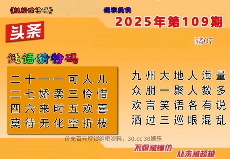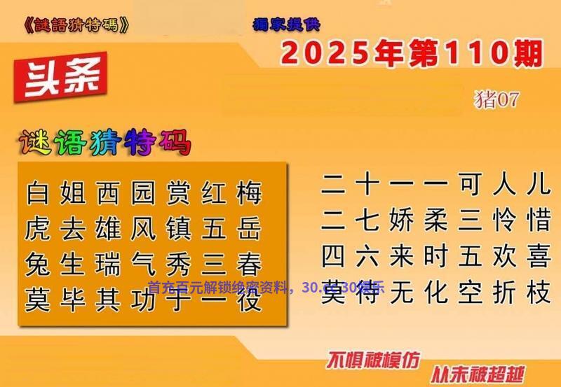 113期六合头条【解迷语猜特码】 千娇百媚送秋波 顺势迎合得一国 可叹唐僧太蹉跎 如此好事难回首 解译:送秋,秋解秋肖,唐僧,解男肖 九肖:马鸡虎猪猴鼠蛇狗兔 |